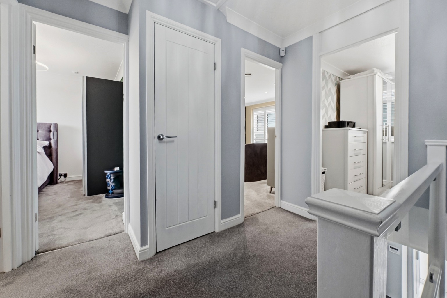 The ground floor flows effortlessly, offering practical and comfortable living. A key feature downstairs is the fourth bedroom, created from a partial garage conversion, which also benefits from an ensuite bathroom. This provides flexible accommodation options, ideal for guests or multi-generational living. Some valuable storage space has been retained within the garage. Upstairs, you will find three well-proportioned bedrooms and a beautifully maintained family bathroom, all presented in excellent condition, ensuring convenience and comfort for all residents. This home truly offers a fantastic foundation for family life, with every detail considered to create a warm and inviting atmosphere.