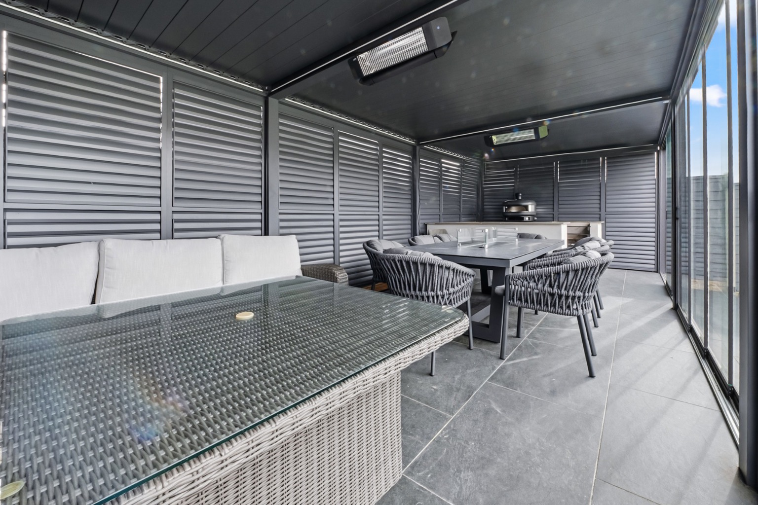 Step outside and discover the exceptional garden, a true highlight of this property. It features a unique, full-width PERGOLA that boasts a RETRACTABLE ROOF and a dedicated BBQ AREA. This innovative design allows for year-round enjoyment, whether you are hosting summer parties or simply relaxing with family. Imagine enjoying alfresco dining under the stars or sheltering from a light shower, all within the comfort of your own garden. The garden itself is a private oasis, perfect for children to play or for adults to unwind, all while enjoying the peaceful COUNTRYSIDE VIEWS. An ELECTRIC CAR CHARGER is also installed, catering to modern needs.
