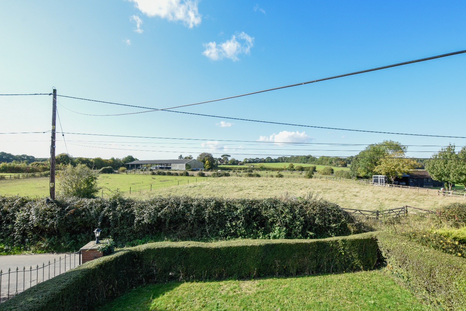 Upon arrival, you’re greeted by a secure gated driveway, providing not only privacy but also ample parking space for multiple vehicles. As you approach the property, you’ll be captivated by the breathtaking countryside views that stretch out in front, offering a serene and refreshing outlook to enjoy every day. Inside, the large lounge and dining area create a welcoming environment, filled with natural light throughout the day. This space is perfect for family gatherings, hosting friends, or simply unwinding in a cozy and bright setting.