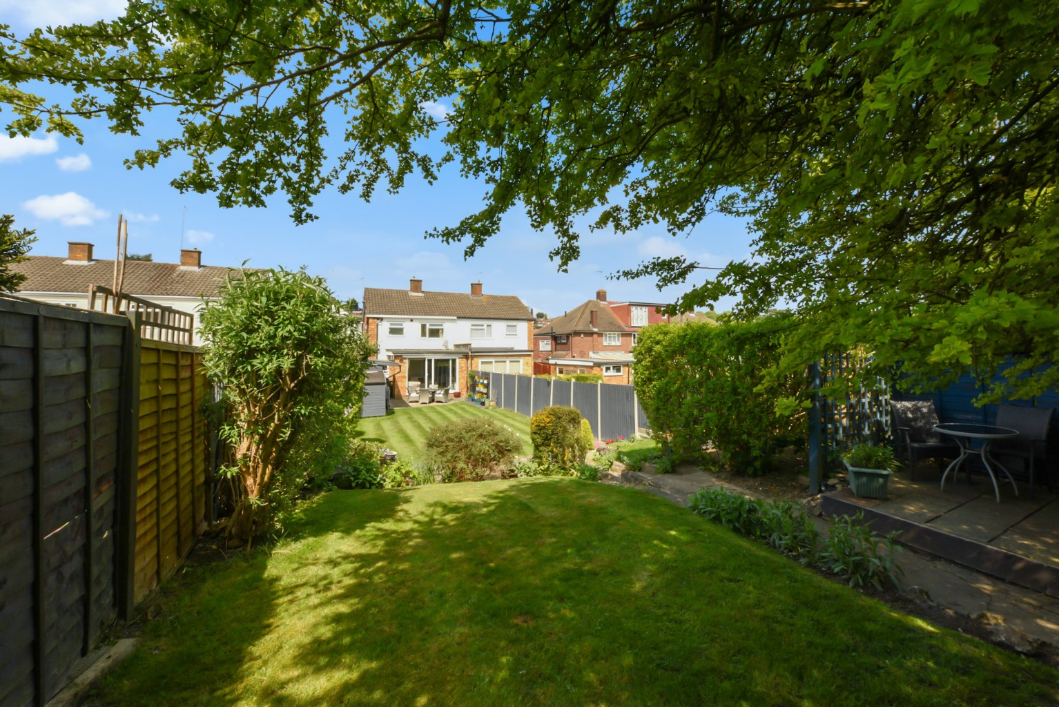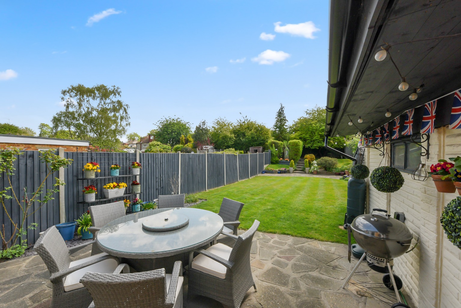 Outside, the property boasts a lush, immaculate garden—a true highlight. This private outdoor space is ideal for summer barbecues, children’s play, or simply unwinding after a busy day. A driveway at the front of the home ensures convenient off-street parking for residents and visitors.