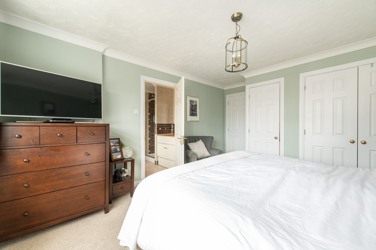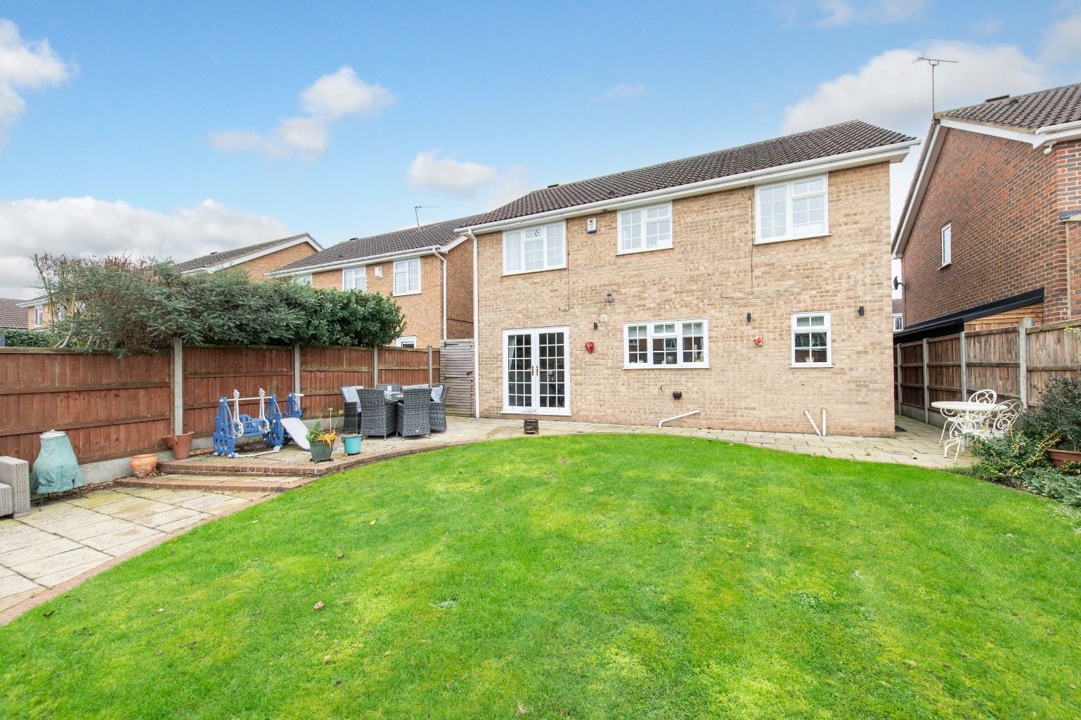 Upstairs, the home continues to impress with four generously sized double bedrooms. Each room boasts built-in wardrobes or cupboards, offering plenty of storage while keeping the spaces uncluttered. The main bedroom is a sanctuary in itself, complete with a private en-suite bathroom, perfect for unwinding after a busy day. A modern family bathroom serves the remaining bedrooms, making morning routines a breeze for the entire household.